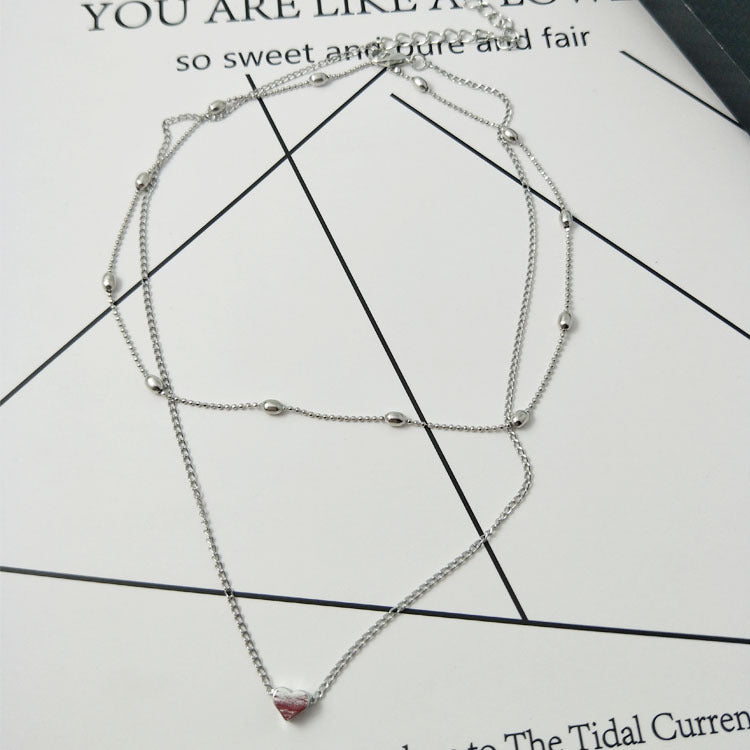 Women's Peach Heart Multi-layer Clavicle Necklace